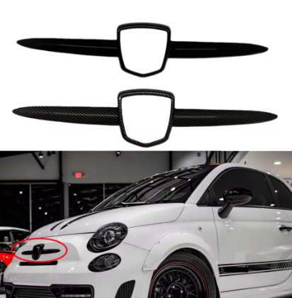 Rinnova il look della tua Fiat 500 Abarth 595/695 con questa elegante copertura per logo anteriore in nero lucido o carbon look.