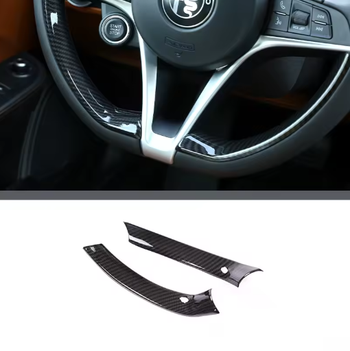 Eleganza e carattere nel cuore del tuo abitacolo. Questo inserto decorativo per la sezione superiore delle razze del volante è l'accessorio perfetto per completare la trasformazione Carbon Look della tua Stelvio. La finitura lucida mette in risalto le linee dinamiche del volante, offrendo un'estetica premium superiore alla plastica di serie.