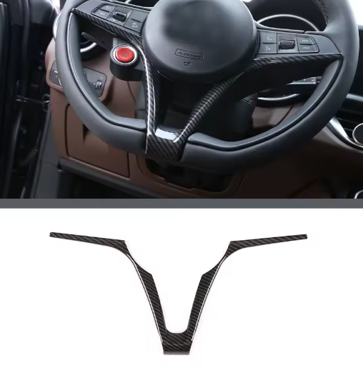 Il DNA sportivo nelle tue mani. Trasforma l'estetica del tuo posto di guida con questo inserto decorativo per il volante in finitura fibra di carbonio. Progettato per seguire perfettamente le linee originali del design Alfa Romeo, aggiunge un tocco racing immediato e protegge le plastiche interne dall'usura quotidiana.