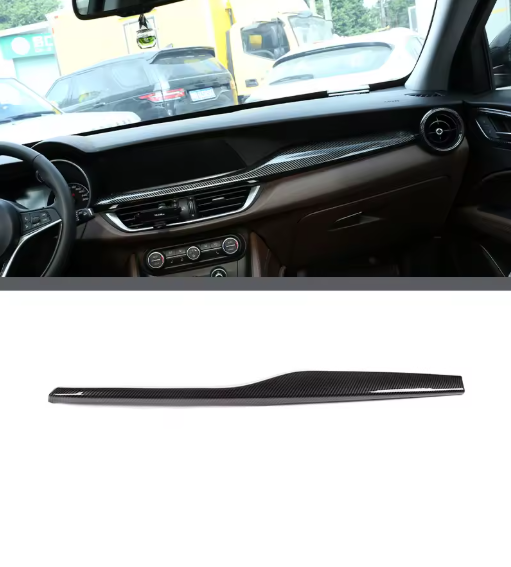 Rinnova l'estetica della tua plancia. Questo inserto decorativo in finitura fibra di carbonio è progettato per coprire la modanatura originale del cruscotto, trasformando istantaneamente l'abitacolo della tua Stelvio in un ambiente più sportivo e moderno. Realizzato con materiali leggeri e resistenti per una perfetta integrazione estetica.